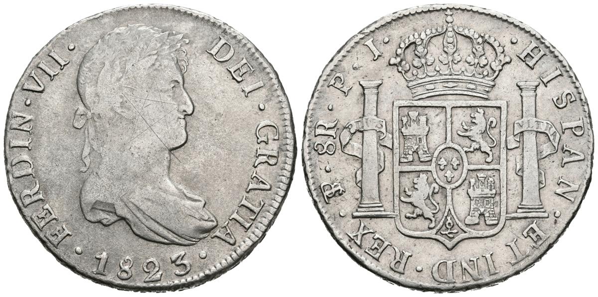 FERNANDO VII (1808-1833). 8 Reales (Ar. 26,63g/38mm). 1823. Potosí PJ. (Cal-2019-1388). MBC-/MBC.