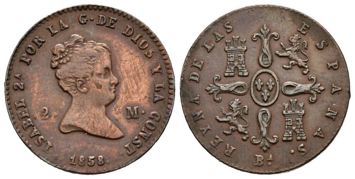 ISABEL II (1833-1868). 2 Maravedís. (Ae. 2,31g/19mm). 1858. Barcelona. (Cal-2019-37). EBC-.