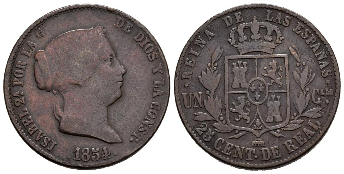 ISABEL II (1833-1868). 25 Céntimos de Real (Ae. 9,28g/27mm). 1854. Segovia. (Cal-2019-187). MBC-/MBC.