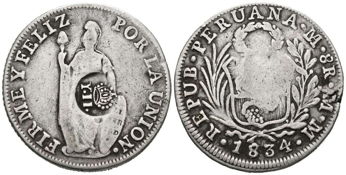 ISABEL II (1833-1868). 1 Peso. (Ar. 26,28g/39mm). 1834. Manila. (Cal-2019-668). Resello Y-II coronada en anverso. MBC-.