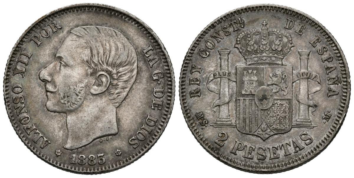 ALFONSO XII (1874-1885). 2 Pesetas. (Ar. 10,00g/27mm). 1883 *18-83. Madrid MSM. (Cal-2019-33). MBC. Bonita pátina.