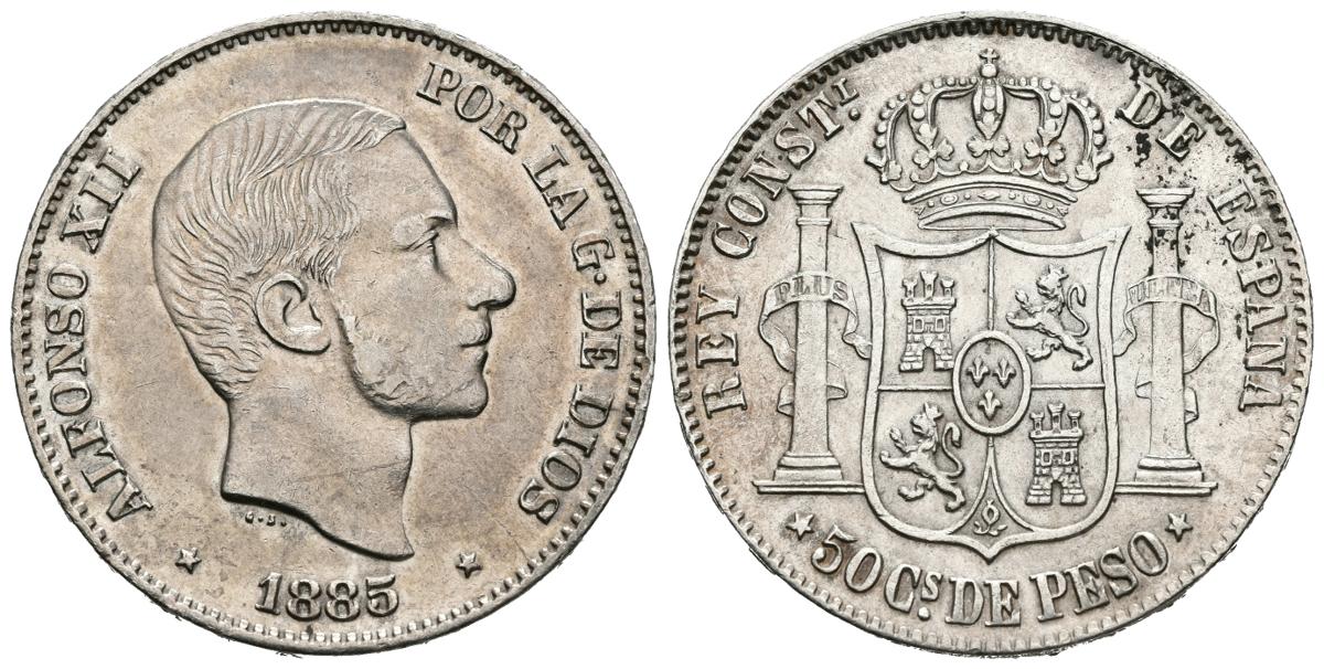 ALFONSO XII (1874-1885). 50 Centavos. (Ar. 12,94g/30mm). 1885. Manila. (Cal-2019-124). MBC/MBC+.