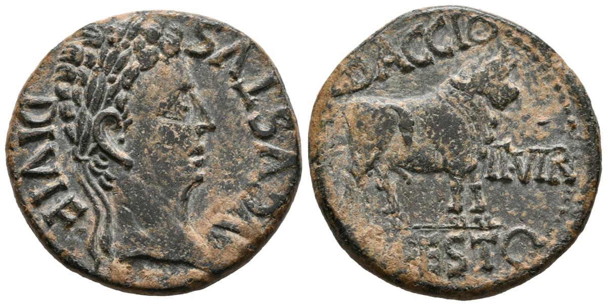 CELSE (Velilla del Ebro, Zaragoza). As. (Ae. 11,36g/28mm). 27 a.C.-14 d.C. Anv: Cabeza laureada de Augusto a derecha, alrededor: AVGVSTVS. DIVI. F. Rev: Rev: Toro parado a derecha, encima: L. SVRA., debajo: L. BVCCO, a los lados: II. VIR. C. V. I. CEL. (FAB-808). MBC+.