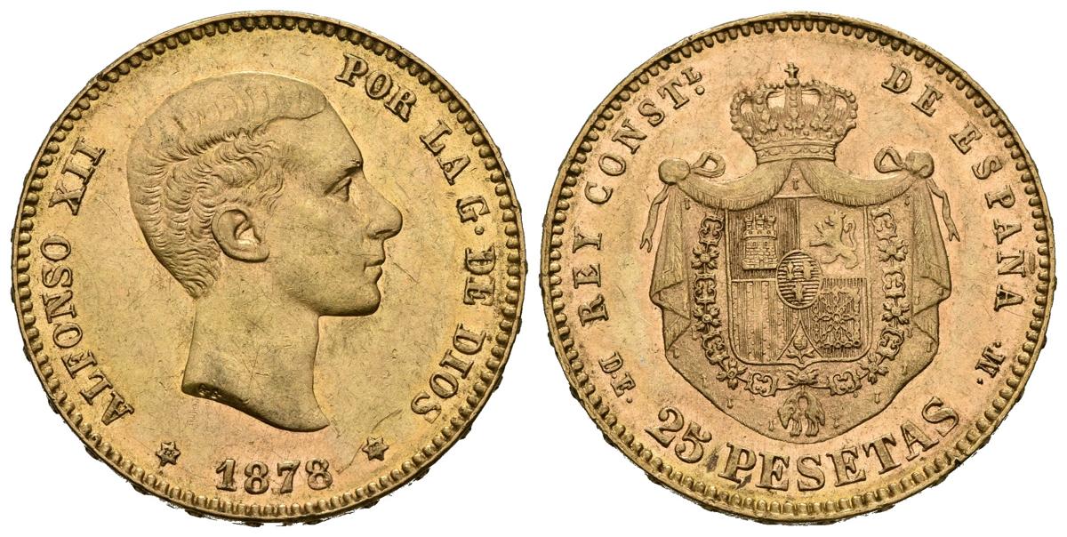 ALFONSO XII (1874-1885). 25 Pesetas. (Au. 8,05g/24mm). 1878 *18-78. Madrid DEM. (Cal-2019-70). MBC+.