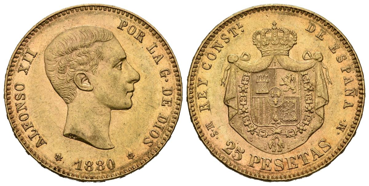 ALFONSO XII (1874-1885). 25 Pesetas. (Au. 8,08g/24mm). 1880 *18-80. Madrid MSM. (Cal-2019-79). MBC+.