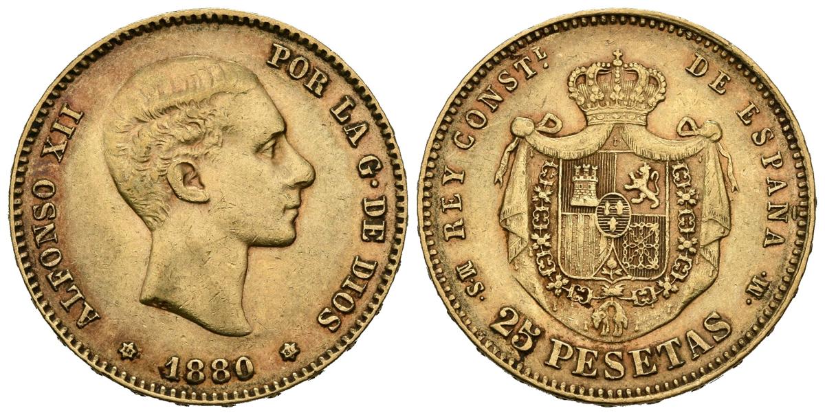 ALFONSO XII (1874-1885). 25 Pesetas. (Au. 8,06g/24mm). 1880 *18-80. Madrid MSM. (Cal-2019-79). MBC+. Marquitas. Restos de brillo original.