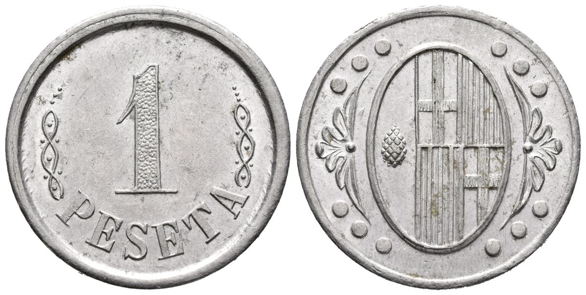 L'AMETLLA DEL VALLES (Barcelona). 1 Peseta. (Al. 1,72g/26mm). 1936-1939. (Cal-2019-4). Valor en número. EBC.