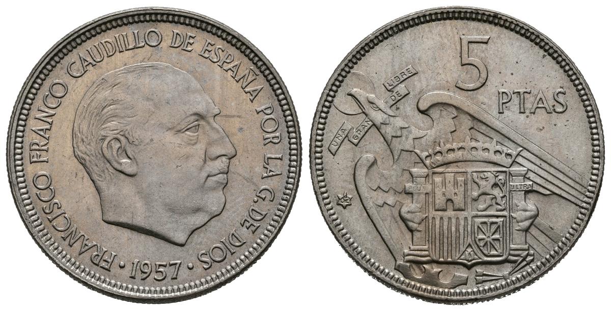 ESTADO ESPAÑOL (1936-1975). 5 Pesetas. (Ni. 5,78g/23mm). 1957 *62. Madrid. (Cal-2019-102). SC.
