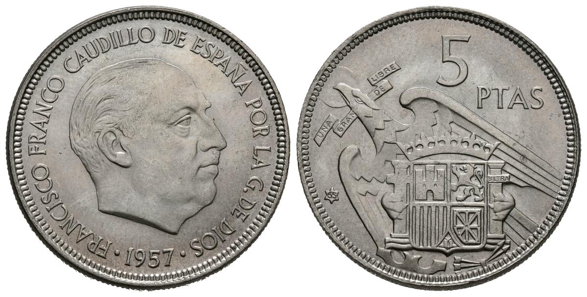 ESTADO ESPAÑOL (1936-1975). 5 Pesetas. (Ni. 5,78g/23mm). 1957 *65. Madrid. (Cal-2019-105). SC.