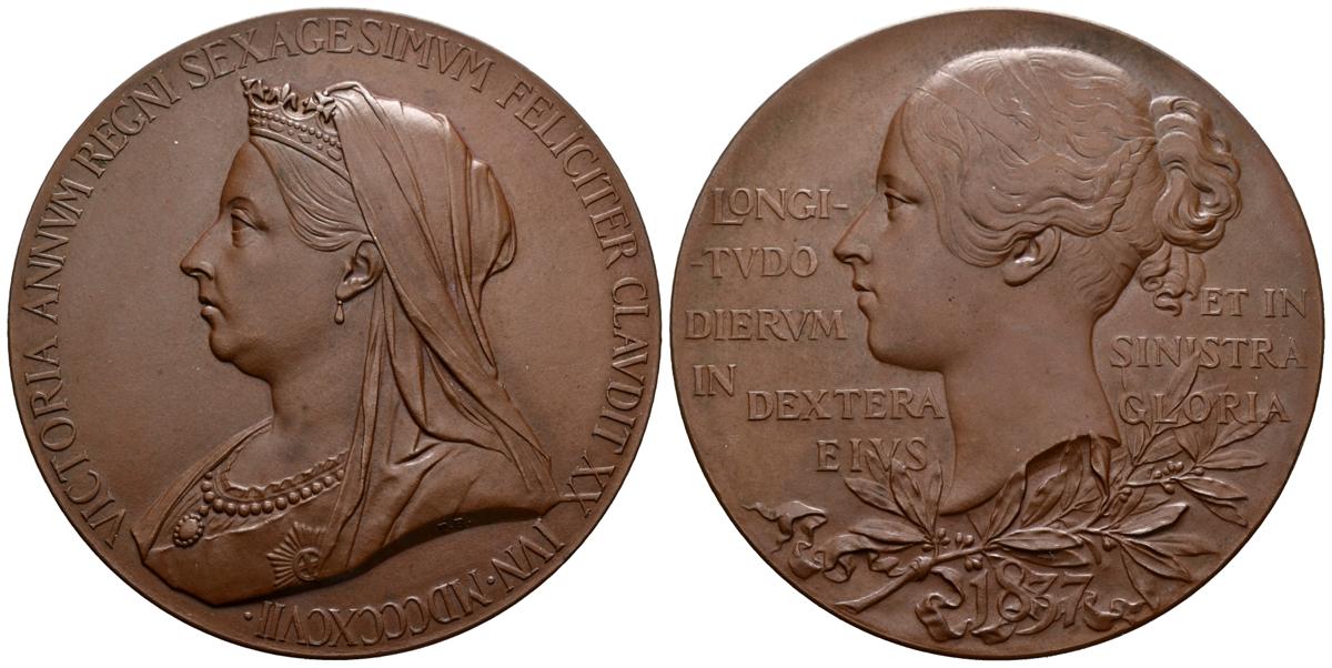 REINO UNIDO. Reina Victoria Diamond Jubilee 1837- 1897. (Ae. 72,71g/55mm). 1897. (Eimer 1817a). SC. Incluye estuche original rojo de la Royal Mint.