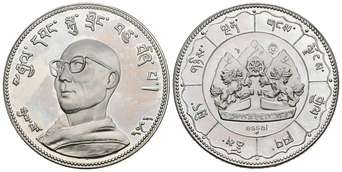 TIBET. Crown of liberty (Ar. 24,36g/39mm). 1966. Tenzi Gyatso. 14º Dalai Lama en el exilio. Acuñado en Franklin Mint, Pensilvania, Estados Unidos. (Km#x9). Proof. Incluye estuche original.