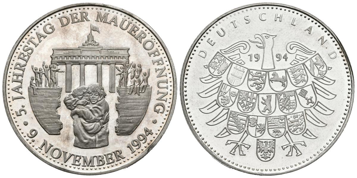 ALEMANIA. 5. Jahrestag der Maueröffnung. (Ar. 15,00g/34mm). 1994. Berlín. SC.