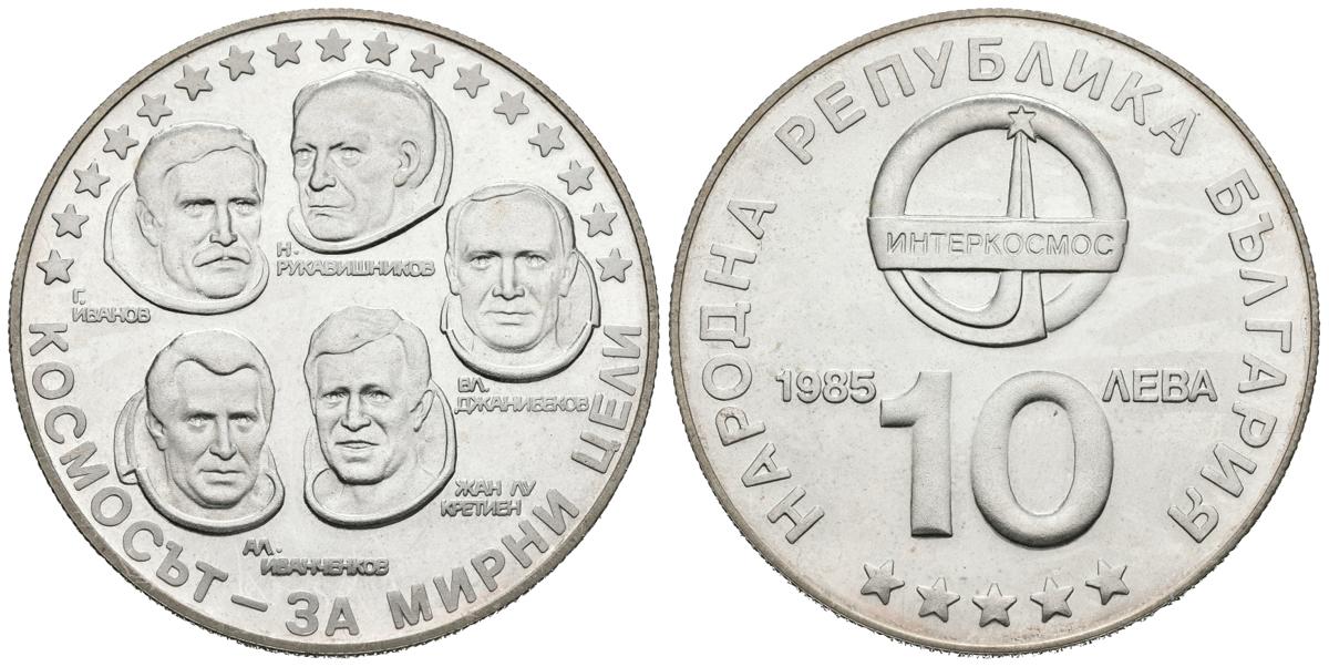 BULGARIA. 10 Leva. (Ar. 18,74g/37mm). 1985. Cosmonautas. (Km#157). EBC.