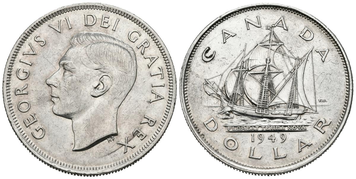 CANADA. 1 Dollar (Ar. 23,41g/36mm). 1949. Jorge VI. Terranova. (Km#47). EBC-. Limpiada. Escasa.