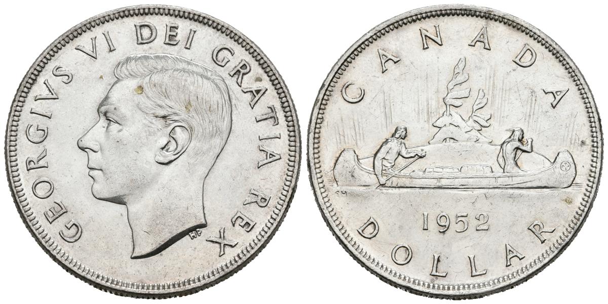 CANADA. 1 Dollar (Ar. 23,34g/36mm). 1952. Jorge VI. (Km#46). EBC-. Limpiada.