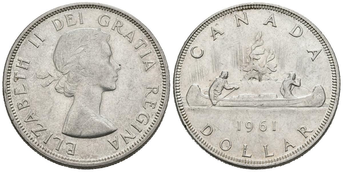 CANADA. 1 Dollar (Ar. 23,01g/36mm). 1961. Isabel II. (Km#54). MBC+.