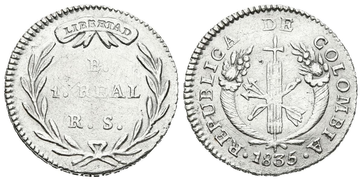 COLOMBIA. 1 Real (Ar. 2,79g/19mm). 1835. Bogotá. (Km#87.1). BC+. Escasa.