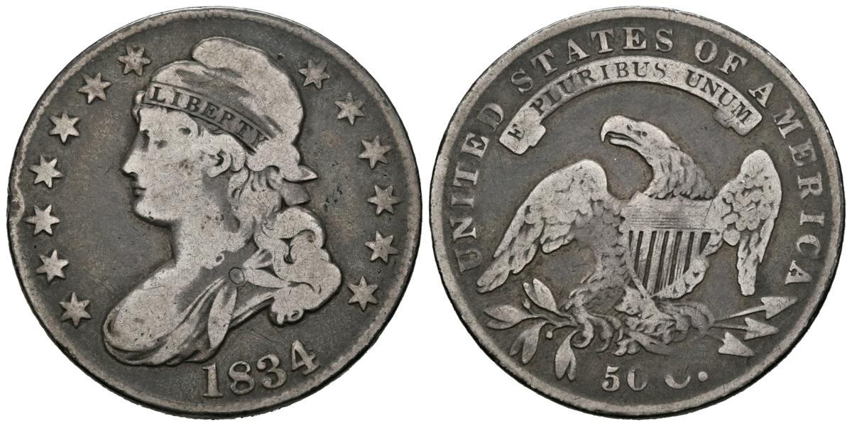 ESTADOS UNIDOS. 1/2 Dollar. (Ar. 13,08g/32mm). 1834. Philadelphia. (Km#37). BC.