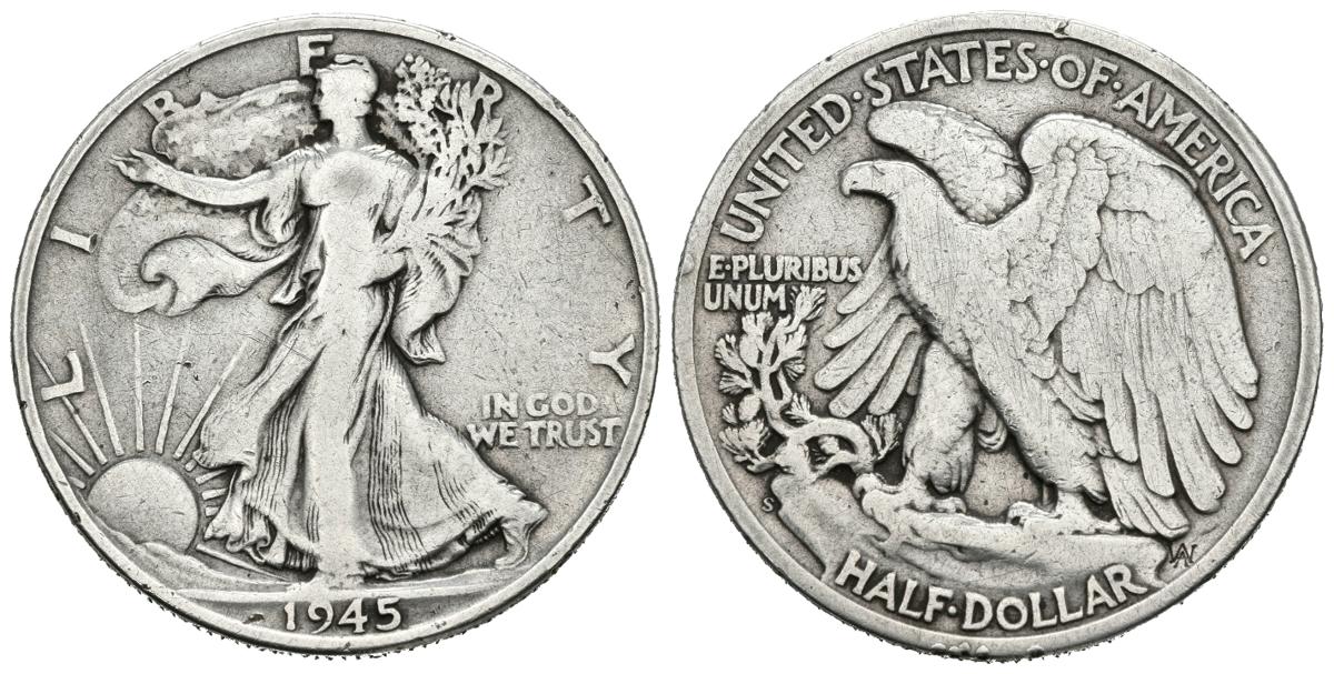 ESTADOS UNIDOS. 1/2 Dollar. (Ar. 12,32g/30mm). 1945. San Francisco S. (Km#142). MBC-.