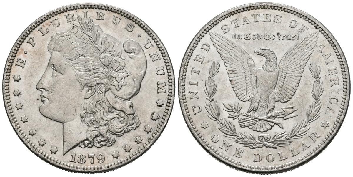 ESTADOS UNIDOS. 1 Dollar. (Ar. 26,72g/38mm). 1879. Filadelfia. (Km#110). EBC+. Rayitas de limpieza.