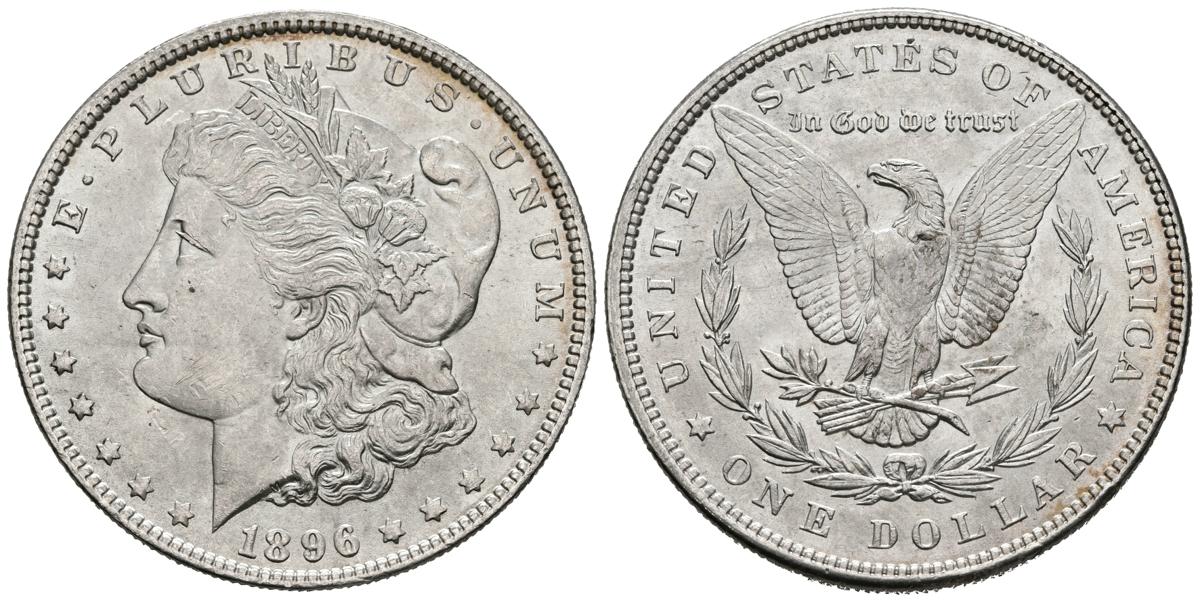 ESTADOS UNIDOS. 1 Dollar. (Ar. 26,76g/38mm). 1896. Filadelfia. (Km#110). EBC+. Rayitas de limpieza.