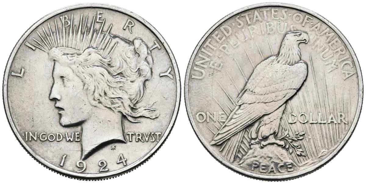 ESTADOS UNIDOS. 1 Dollar (Ar. 26,75g/38mm). 1924. Philadelphia. (Km#150). MBC+. Limpiada.
