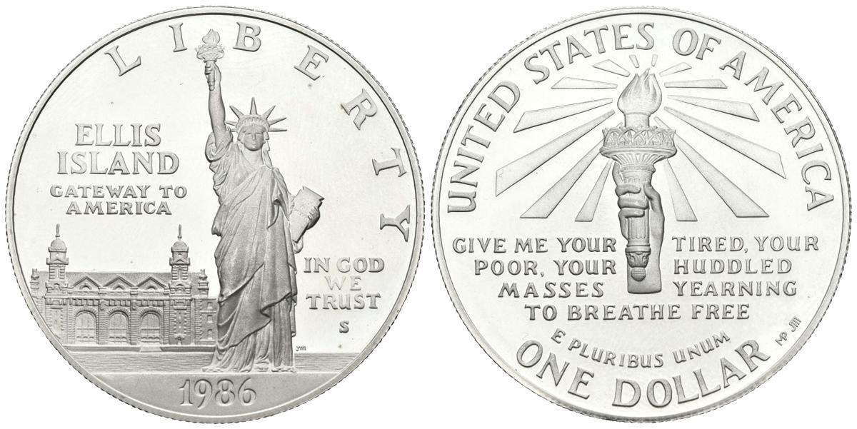 ESTADOS UNIDOS. 1 Dollar. (Ar. 26,67g/38mm). 1986. Estatua de la Libertad en Ellis Island. (Km#214). PROOF.