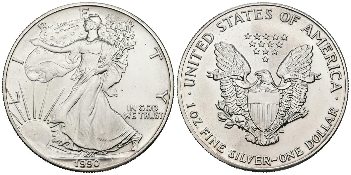ESTADOS UNIDOS. 1 Dollar (Ar. 31,12g/40mm). 1990. Philaldephia. (Km#273). SC. Rayitas de limpieza en anverso.