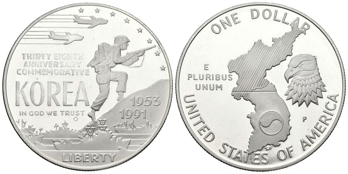 ESTADOS UNIDOS. 1 Dollar. (Ar. 27,16g/32mm). 1991. 28 Aniversario de la Guerra de Corea (1953-1991). (Km#231). PROOF.