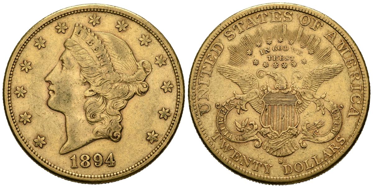 ESTADOS UNIDOS. 20 Dollars. (Au. 33,24g/34mm). 1894. San Francisco. (Km#74.3). MBC+.