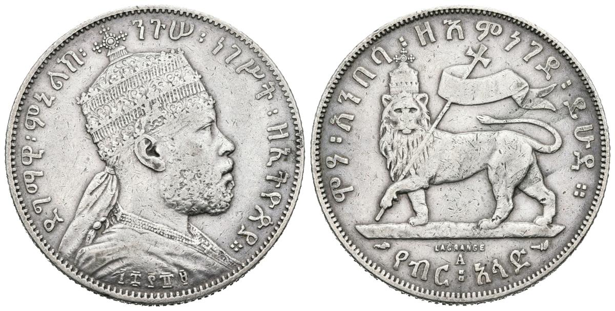 ETIOPIA. 1/2 Birr. (Ar. 13,99g/30mm). 1889. Menelik II. París A. (Km#4). MBC.