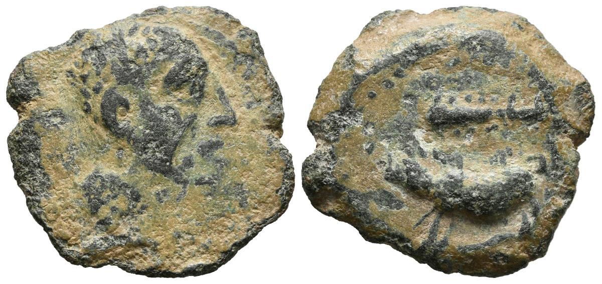 INCIERTA. Semis (Ae. 8,41g/22mm). 180 a.C. (FAB-755). Anv: Cabeza masculina a derecha. Rev: Jabalí a izquierda sobre línea, encima clava. BC+. Muy escasa.