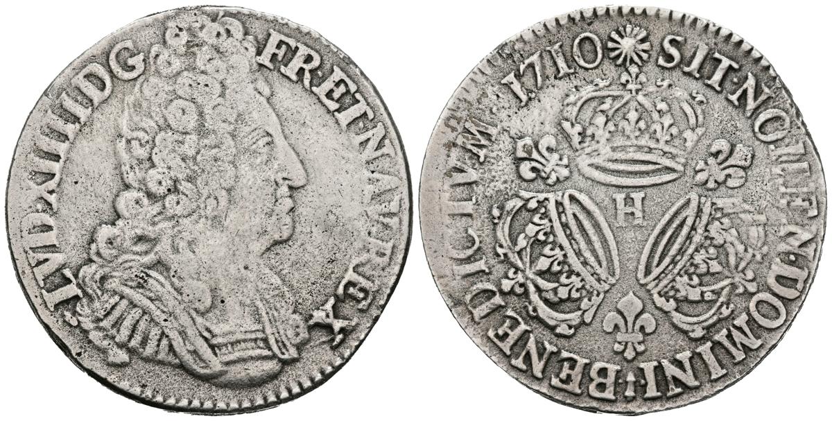 FRANCIA, Luis XIV (1643-1715). 1 Ecu. (Ar. 27,66g/41mm). 1710. La Rochelle H. (Gadoury 229). MBC.