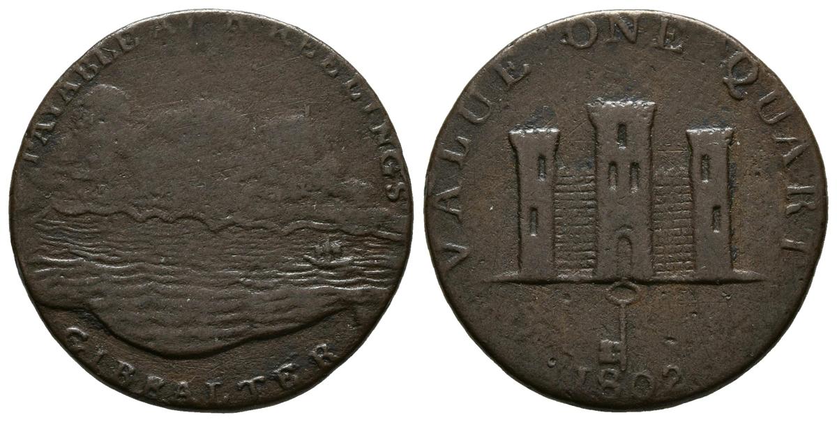 GIBRALTAR. 1 Quart. (Ae. 4,01g/21mm). 1802. Robert Keeling. (Km#Tn1). MBC-.