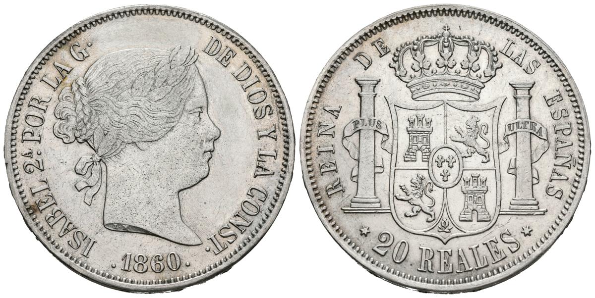 ISABEL II (1833-1868). 20 Reales. (Ar. 25,66g/37mm). 1860. Madrid. (Cal-2019-617). MBC+.