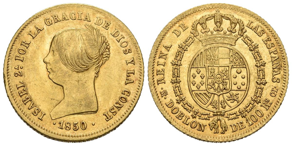 ISABEL II (1833-1868). Doblón de 100 Reales. (Au. 8,20g/22mm). 1850. Madrid CL. (Cal-2019-757). MBC+.