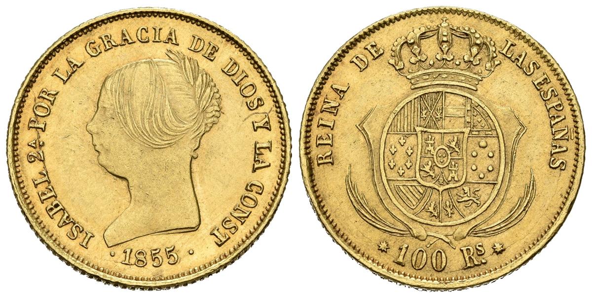 ISABEL II (1833-1868). 100 Reales. (Au. 8,38g/22mm). 1855. Barcelona. (Ca-2019-763). EBC-.