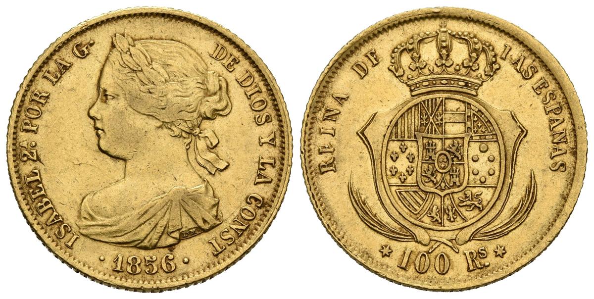 ISABEL II (1833-1868). 100 Reales. (Au. 8,88g/22mm). 1856. Madrid. (Cal-2019-783). MBC.