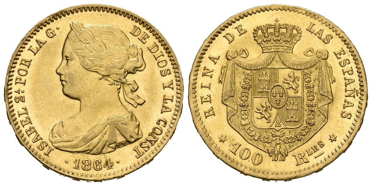 ISABEL II (1833-1868). 100 Reales. (Au. 8,38g/22mm). 1864. Madrid. (Cal-2019-792). EBC.