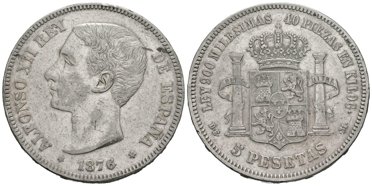 ALFONSO XII (1874-1885). 5 Pesetas. (Ar. 24,89g/37mm). 1876 *18-76. Madrid DEM. (Cal-2019-37). MBC.