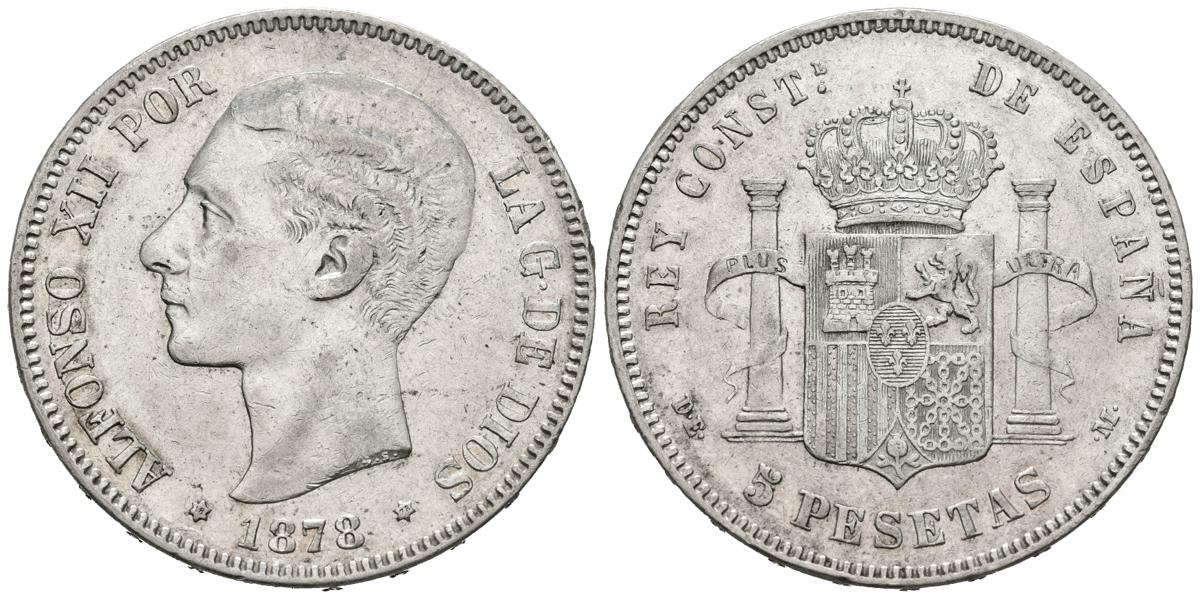 ALFONSO XII (1874-1885). 5 Pesetas. (Ar. 25,00g/37mm). 1878 *18-78. Madrid DEM. (Cal-2019-39). MBC.