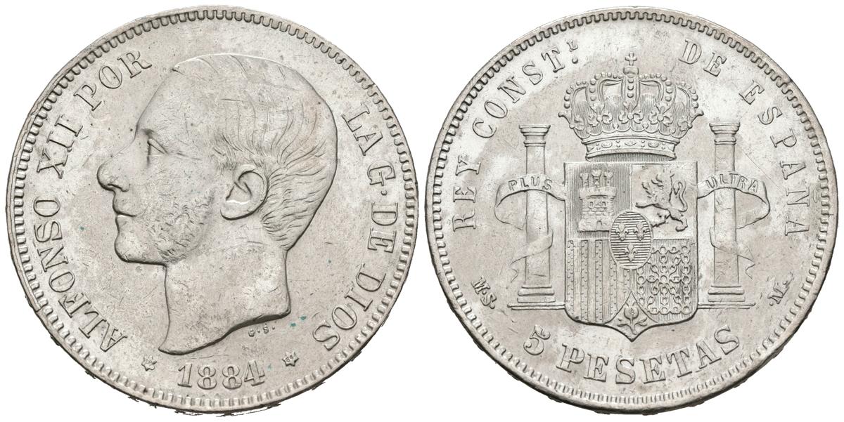 ALFONSO XII (1874-1885). 5 Pesetas. (Ar. 24,98g/37mm). 1884 *18-84. Madrid MSM. (Cal-2019-55). MBC.