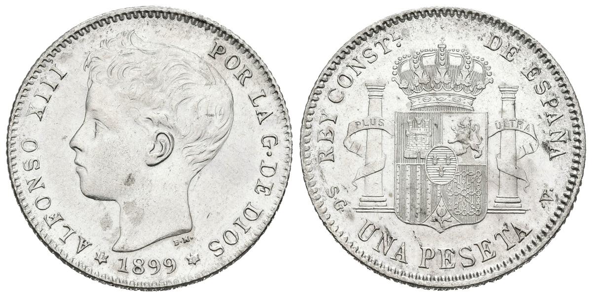 ALFONSO XIII (1885-1931). 1 Peseta. (Ar. 5,19g/23mm). 1899 *18-99. Madrid SGV. (Cal-2019-57). EBC-.