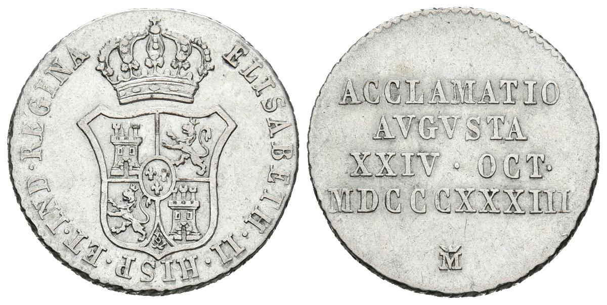 ISABEL II (1833-1868). Proclamación en Madrid. (Ar. 3,01/19mm). 24 de Octubre de 1833. Módulo de 1 Real. (H-23). MBC+.