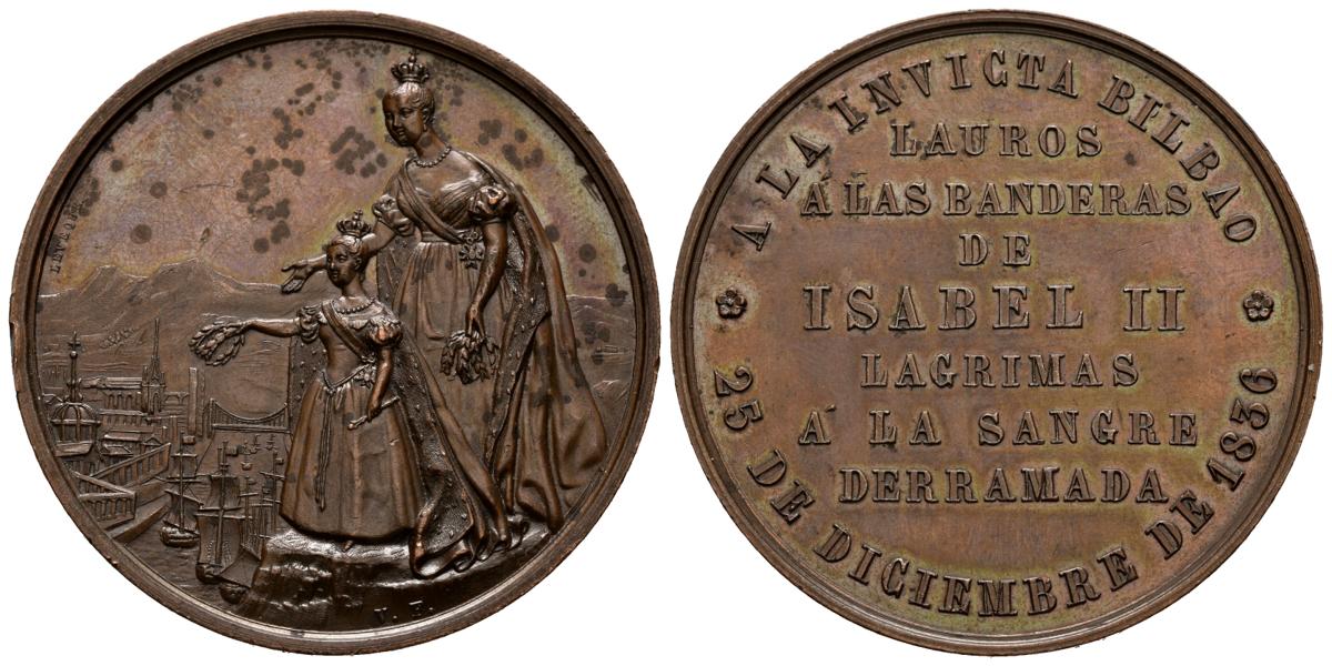 ISABEL II (1833-1868). A la invicta Bilbao. (Ae. 31,67g/41mm). 25 de Diciembre de 1836. Grabador: Leveque. (RAH 577). EBC-. Manchitas.
