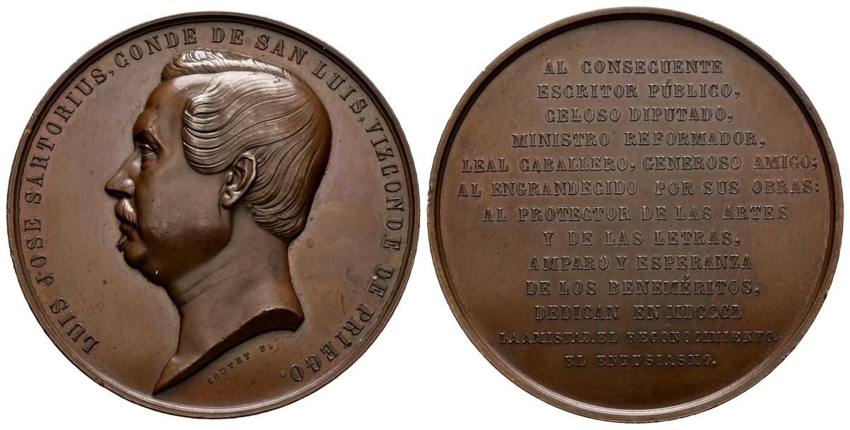 ISABEL II (1833-1868). Luis José Sartorius. Conde de San Luis y Vizconde Priego. (Ae.129,62g/64mm). 1850. Grabador: Bouvet. (VQ 14311). EBC. Mínimas marquitas.
