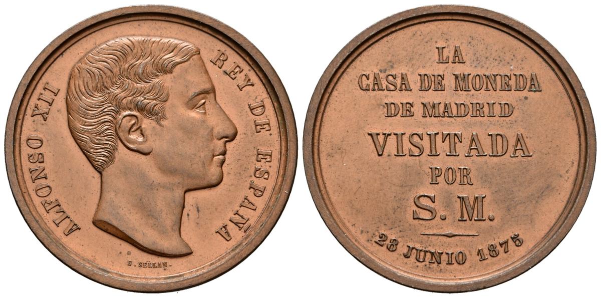 ALFONSO XII (1874-1885). Visita a la Casa de la Moneda. (Ae. 14,43g/33mm). 28 de junio de 1875. Madrid. Grabador: G. Sellan, (Vives 462). EBC-.