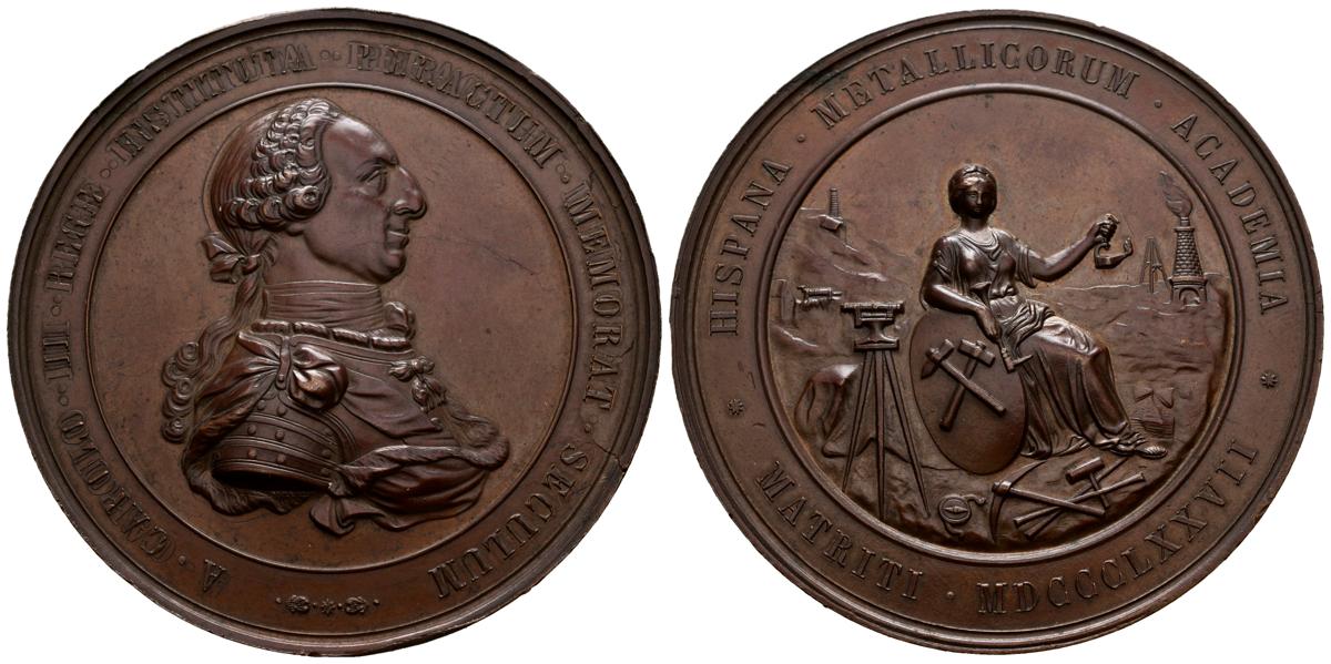 ALFONSO XII (1874-1885). Centenario de la Academia de la Minería (Ae. 242,00g/70mm). 1877. (Vives 474). EBC. Levísimos golpecitos. Ligera doble acuñación en anverso.