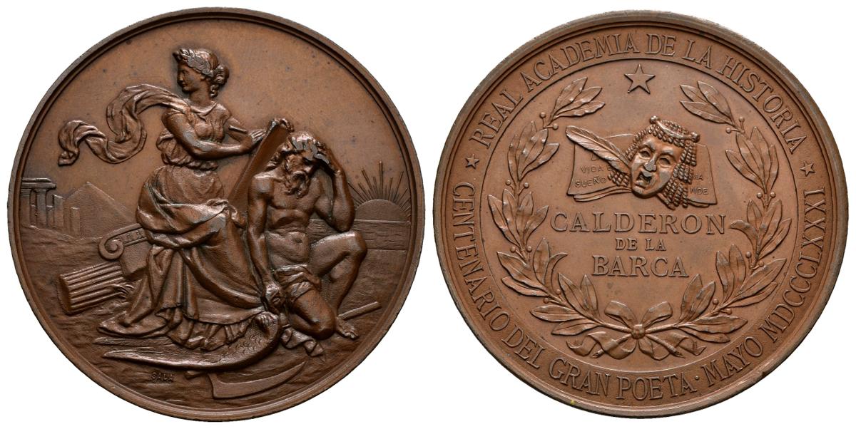ALFONSO XII (1874-1885). La Real Academia de la Historia en el II Centenario de la Muerte de Calderón de la Barca. (Ae.96.57g/60mm). 1881. Grabador: Sala. (RAH 699). EBC-. Marquitas en la gráfila.
