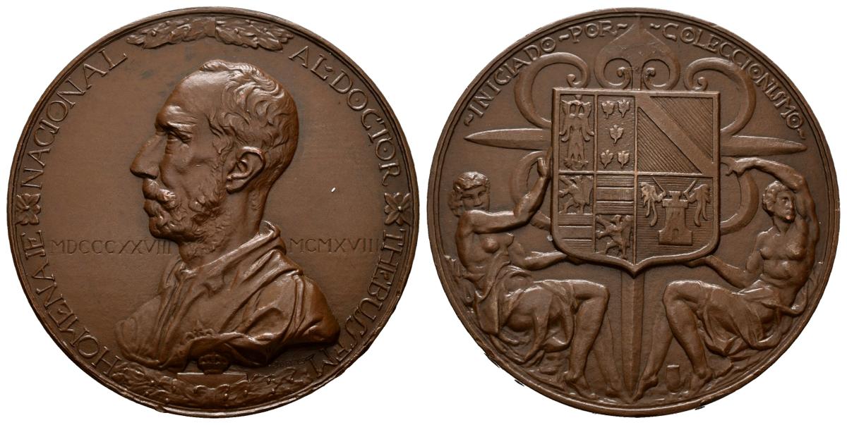 ALFONSO XIII. (1875-1931). Homenaje al Doctor Mariano Pardo de Figueroa (Thebussem). (Ae. 50,22g/49mm). 1918. Grabador: J. Ortells. (Patrimonio Nacional 1313). EBC-.